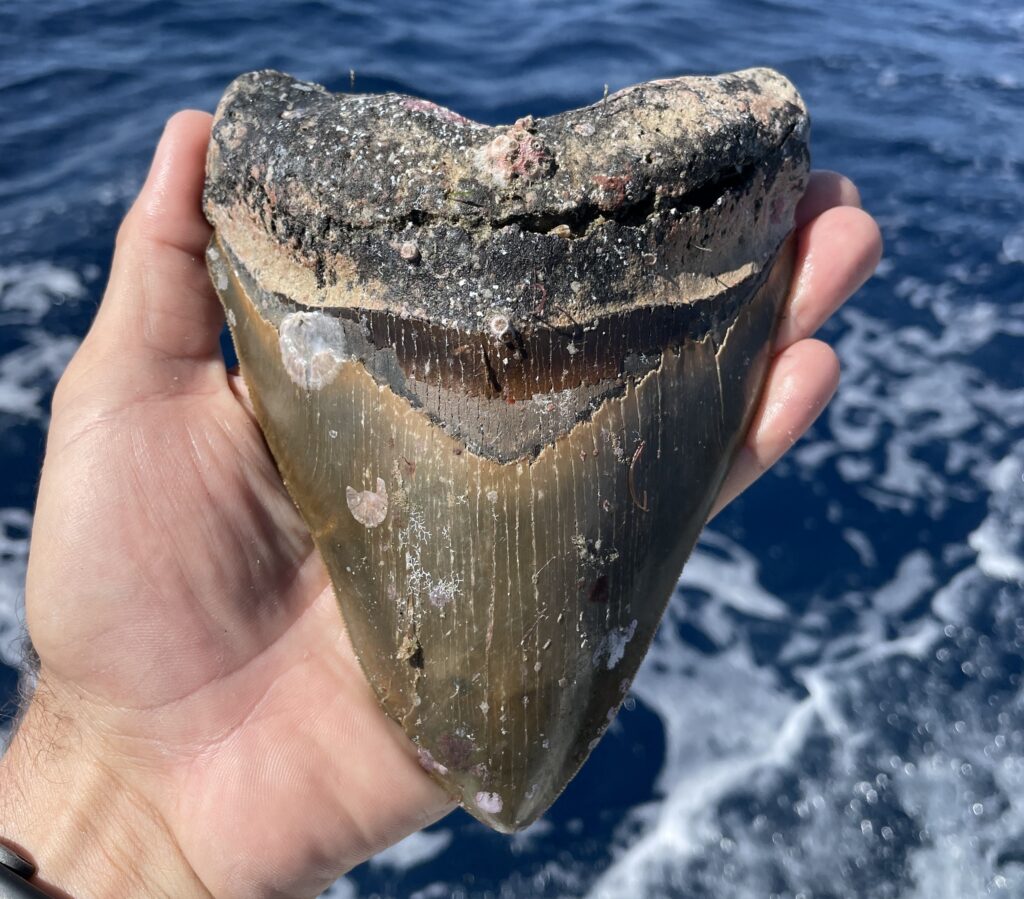 We dive over 110 feet deep into fossil-rich beds located 40 miles off the coast of North Carolina to recover some of the most sought-after shark teeth in the world. These dives lead us to uncover genuine Megalodon teeth, preserved beneath layers of sand and sediment for millions of years.Every tooth we bring to the surface is 100% authentic—no restorations, no replicas, and no fakes. Just real, fossilized shark teeth with unique serrations, bourlette, and enamel coloration that reflect their prehistoric origin.Our collection includes a wide variety of Megalodon teeth fossils, from small specimens ideal for beginners to museum-grade pieces that impress even the most experienced collectors.