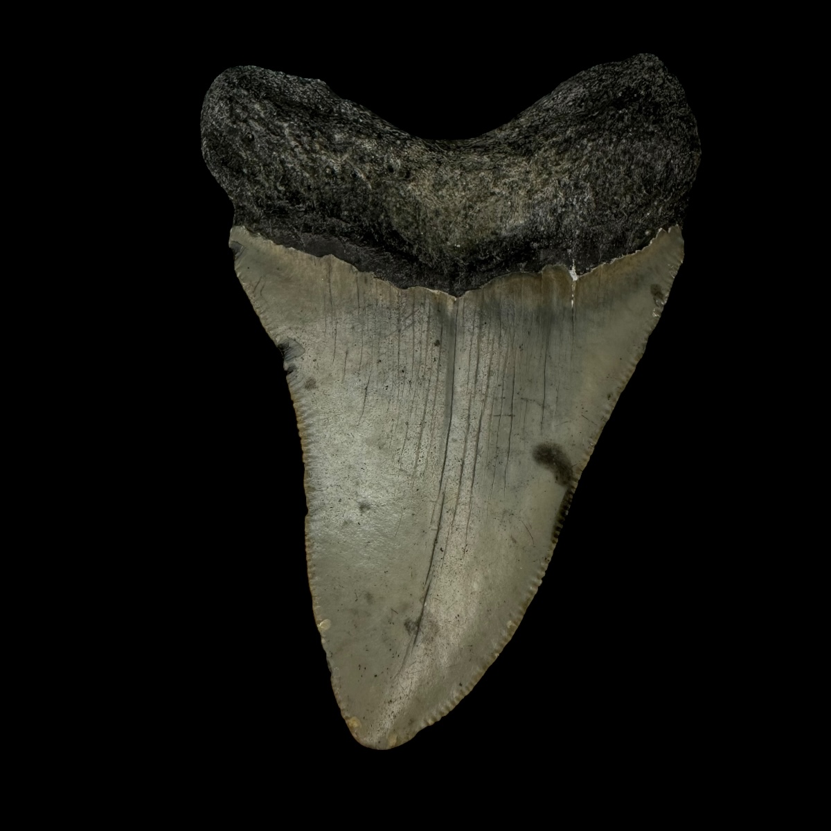 Every Megalodon tooth fossil we offer is completely natural, with no repairs or enhancements—just a light cleaning to remove marine deposits. Each piece is one-of-a-kind, showcasing its own distinctive coloration, sharp serrations, and natural gloss. This Megalodon tooth fossil is a true collector’s treasure, combining authenticity, prehistoric value, and unmatched detail.
