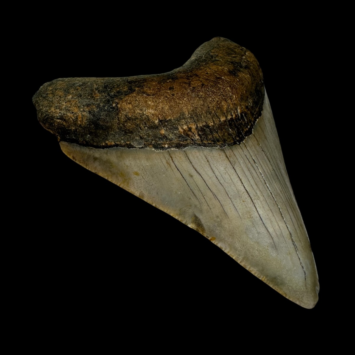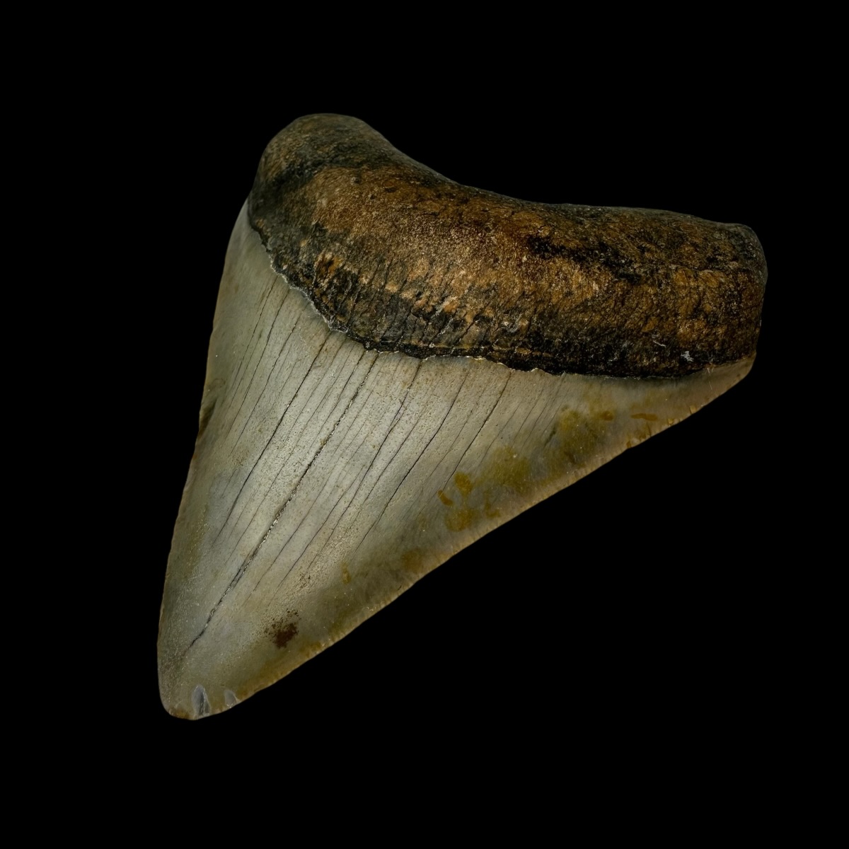 Every Megalodon tooth fossil we offer is completely natural, with no repairs or enhancements—just a light cleaning to remove marine deposits. Each piece is one-of-a-kind, showcasing its own distinctive coloration, sharp serrations, and natural gloss. This Megalodon tooth fossil is a true collector’s treasure, combining authenticity, prehistoric value, and unmatched detail.