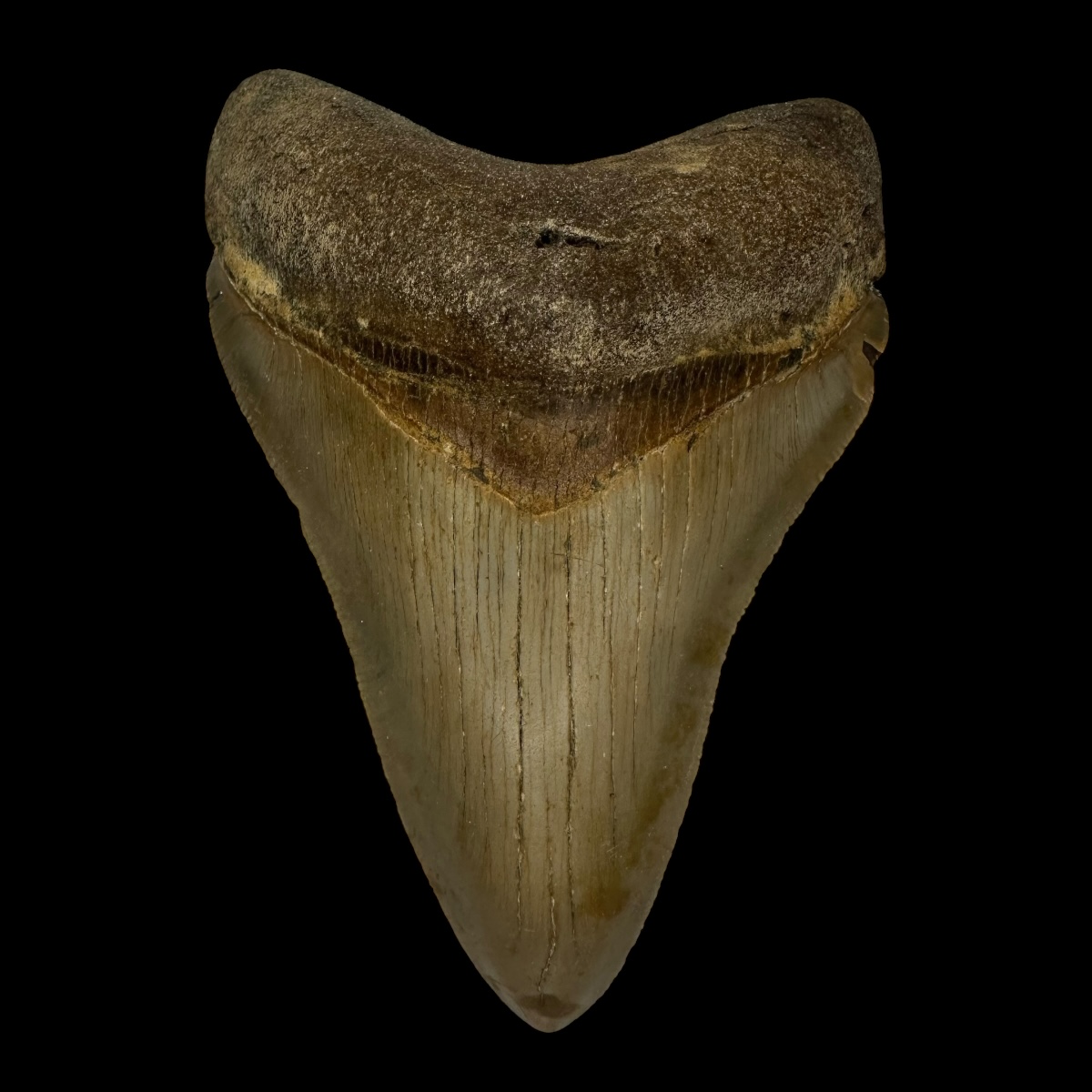 Every Megalodon tooth fossil we offer is completely natural, with no repairs or enhancements—just a light cleaning to remove marine deposits. Each piece is one-of-a-kind, showcasing its own distinctive coloration, sharp serrations, and natural gloss. This Megalodon tooth fossil is a true collector’s treasure, combining authenticity, prehistoric value, and unmatched detail.