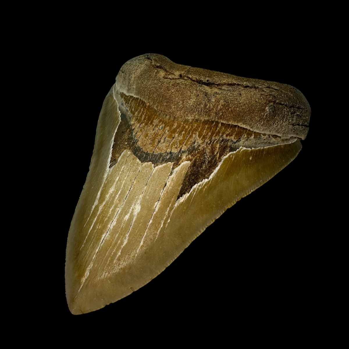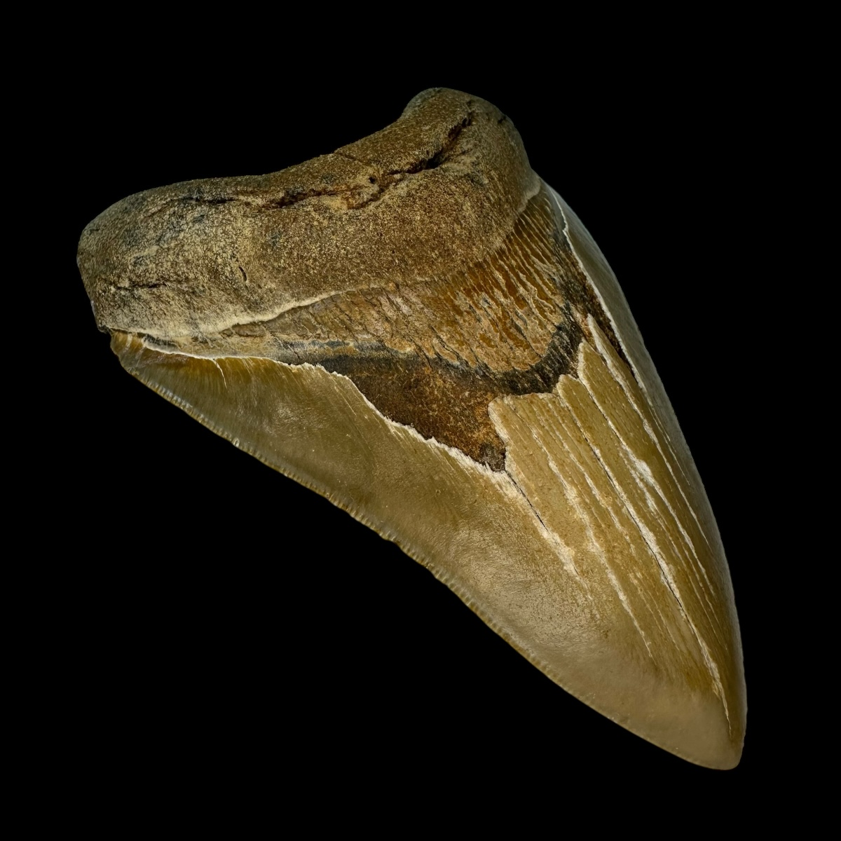 Every Megalodon tooth fossil we offer is completely natural, with no repairs or enhancements—just a light cleaning to remove marine deposits. Each piece is one-of-a-kind, showcasing its own distinctive coloration, sharp serrations, and natural gloss. This Megalodon tooth fossil is a true collector’s treasure, combining authenticity, prehistoric value, and unmatched detail.