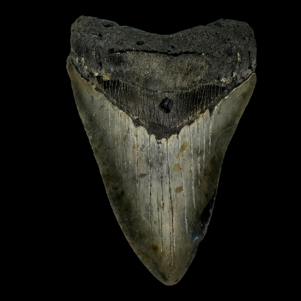 Every Megalodon tooth fossil we offer is completely natural, with no repairs or enhancements—just a light cleaning to remove marine deposits. Each piece is one-of-a-kind, showcasing its own distinctive coloration, sharp serrations, and natural gloss. This Megalodon tooth fossil is a true collector’s treasure, combining authenticity, prehistoric value, and unmatched detail.