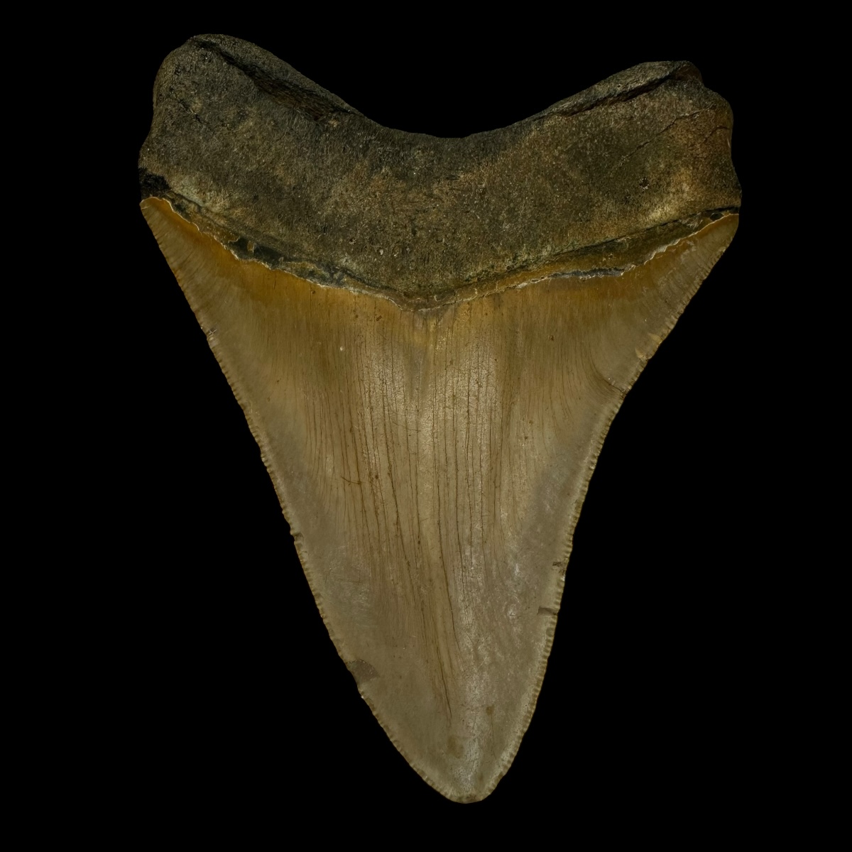 Every Megalodon tooth fossil we offer is completely natural, with no repairs or enhancements—just a light cleaning to remove marine deposits. Each piece is one-of-a-kind, showcasing its own distinctive coloration, sharp serrations, and natural gloss. This Megalodon tooth fossil is a true collector’s treasure, combining authenticity, prehistoric value, and unmatched detail.