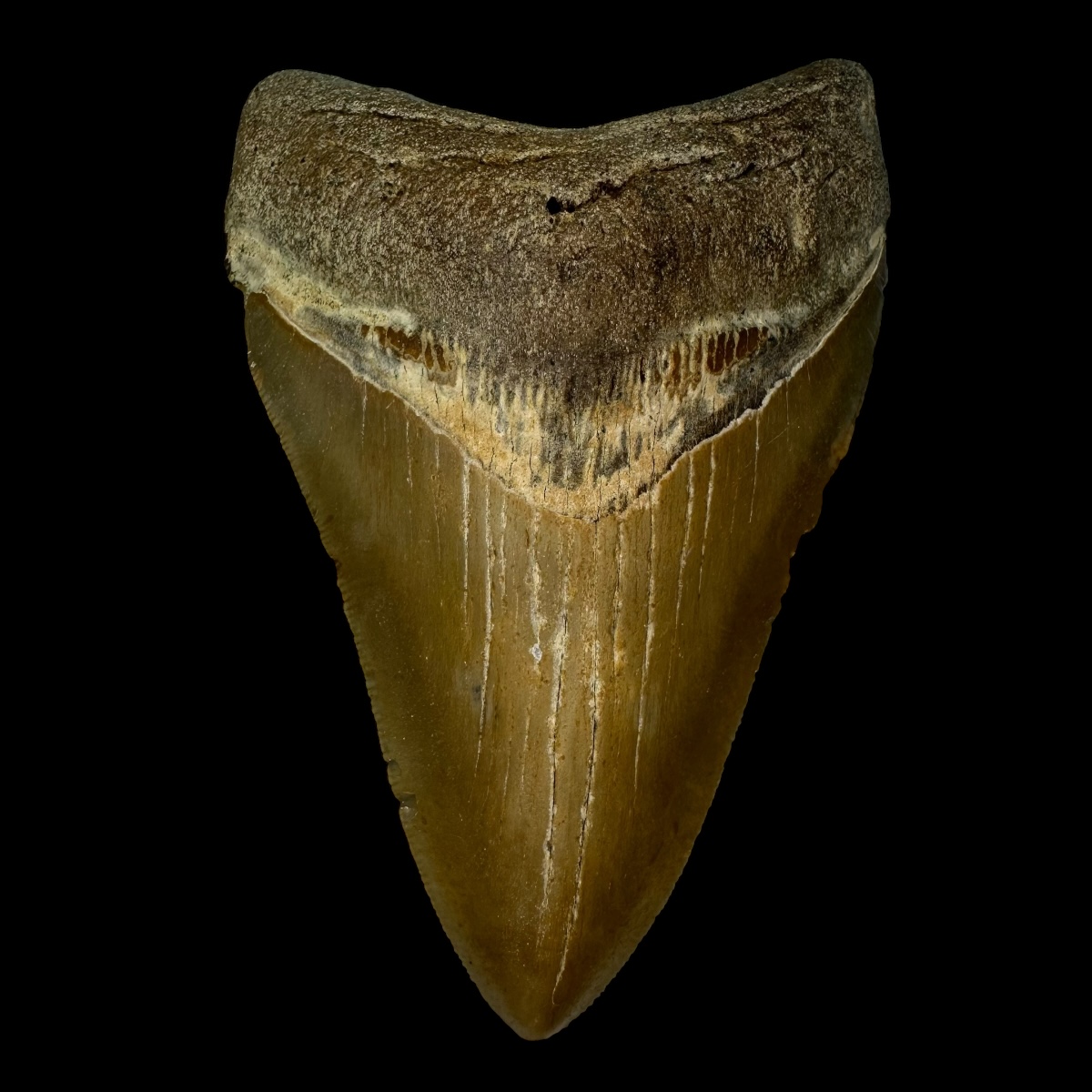 Every Megalodon tooth fossil we offer is completely natural, with no repairs or enhancements—just a light cleaning to remove marine deposits. Each piece is one-of-a-kind, showcasing its own distinctive coloration, sharp serrations, and natural gloss. This Megalodon tooth fossil is a true collector’s treasure, combining authenticity, prehistoric value, and unmatched detail.