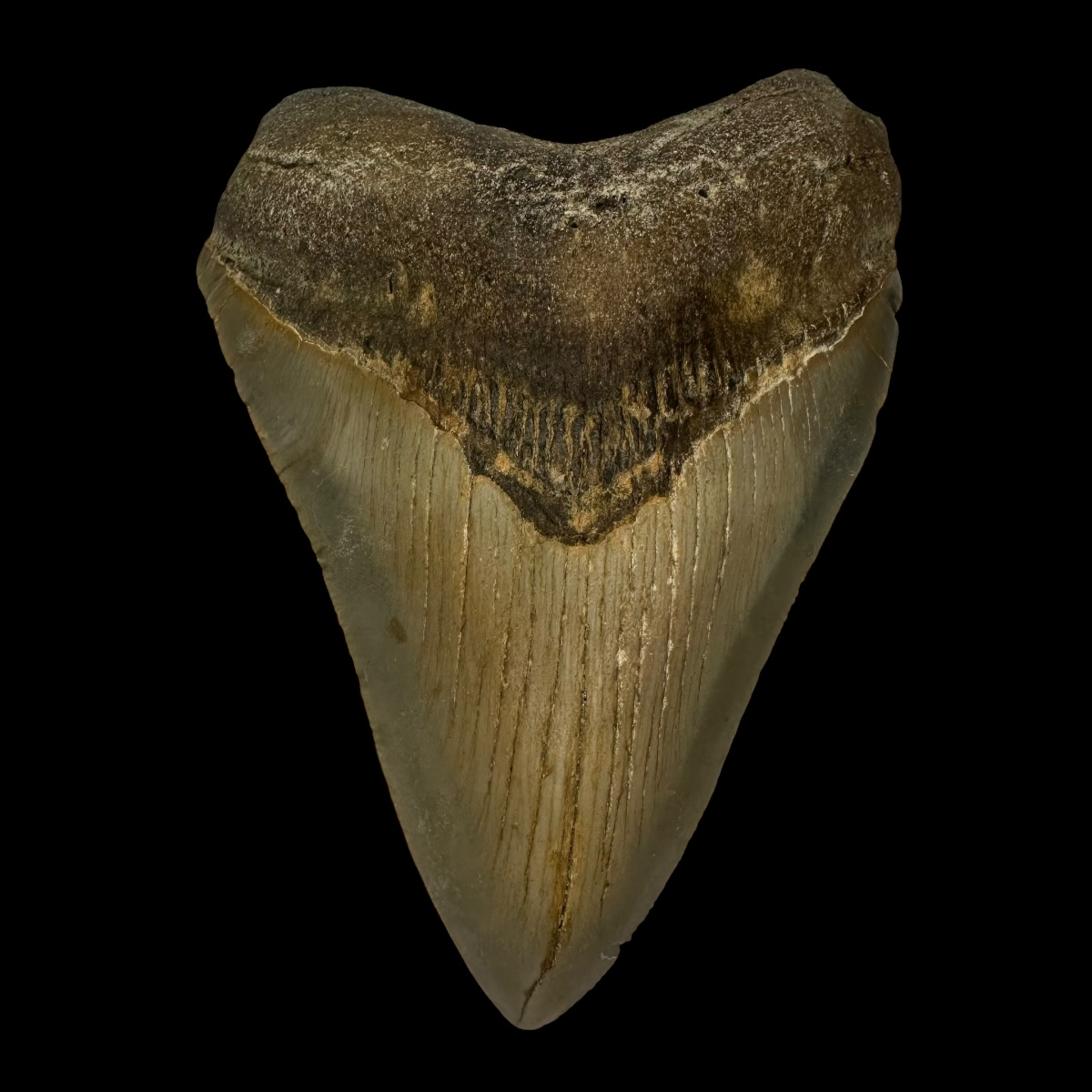 Every Megalodon tooth fossil we offer is completely natural, with no repairs or enhancements—just a light cleaning to remove marine deposits. Each piece is one-of-a-kind, showcasing its own distinctive coloration, sharp serrations, and natural gloss. This Megalodon tooth fossil is a true collector’s treasure, combining authenticity, prehistoric value, and unmatched detail.