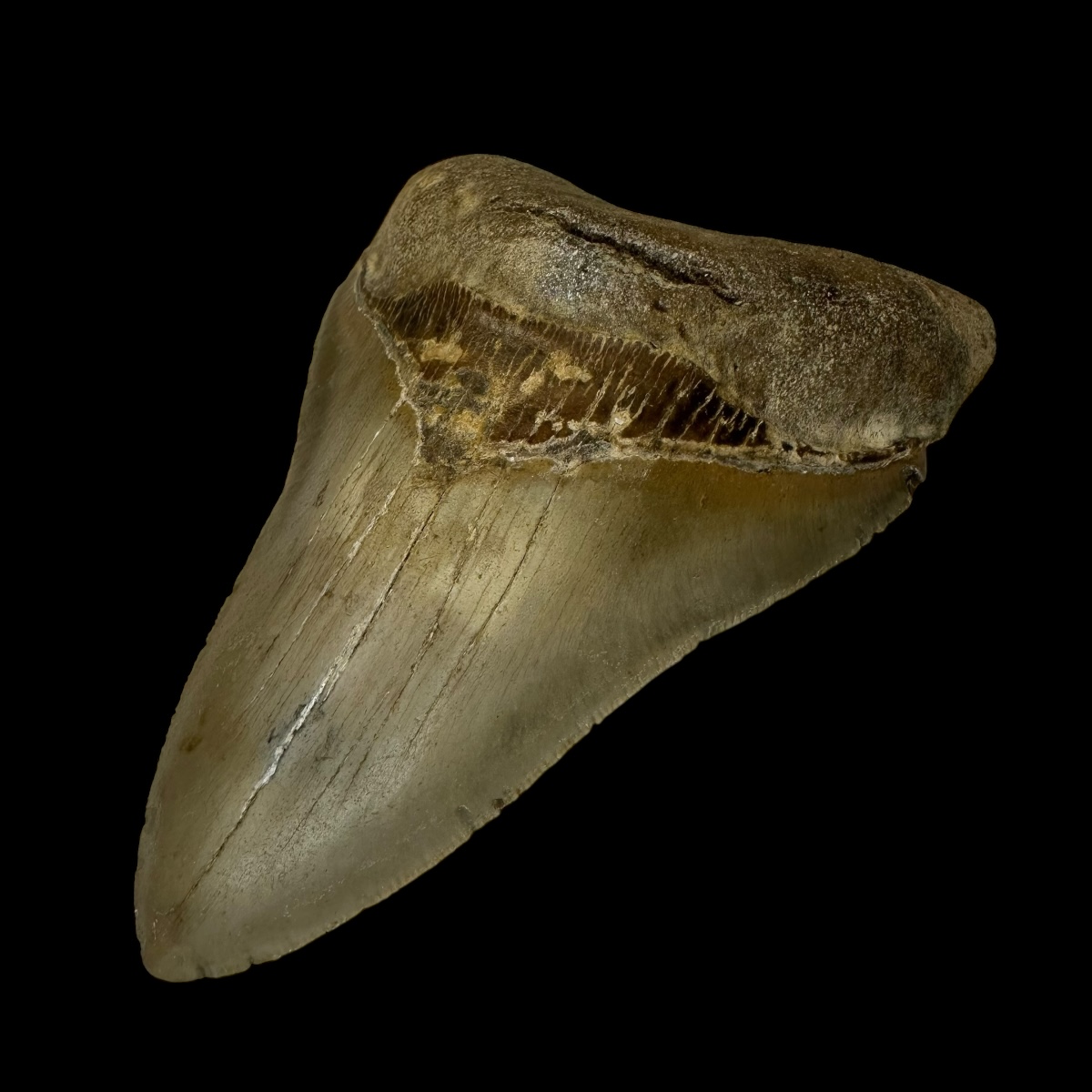 Every Megalodon tooth fossil we offer is completely natural, with no repairs or enhancements—just a light cleaning to remove marine deposits. Each piece is one-of-a-kind, showcasing its own distinctive coloration, sharp serrations, and natural gloss. This Megalodon tooth fossil is a true collector’s treasure, combining authenticity, prehistoric value, and unmatched detail.
