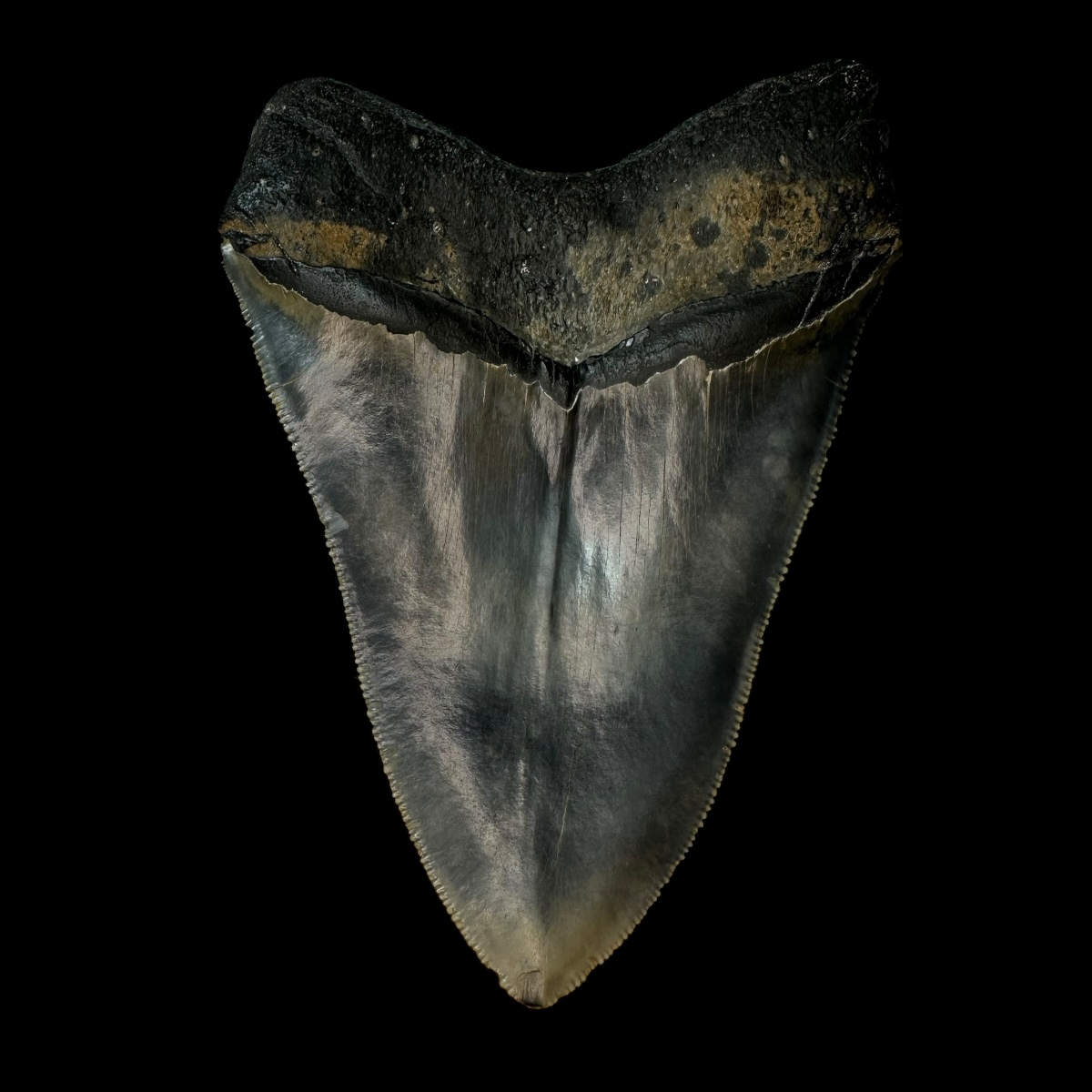 Every Megalodon tooth fossil we offer is completely natural, with no repairs or enhancements—just a light cleaning to remove marine deposits. Each piece is one-of-a-kind, showcasing its own distinctive coloration, sharp serrations, and natural gloss. This Megalodon tooth fossil is a true collector’s treasure, combining authenticity, prehistoric value, and unmatched detail.