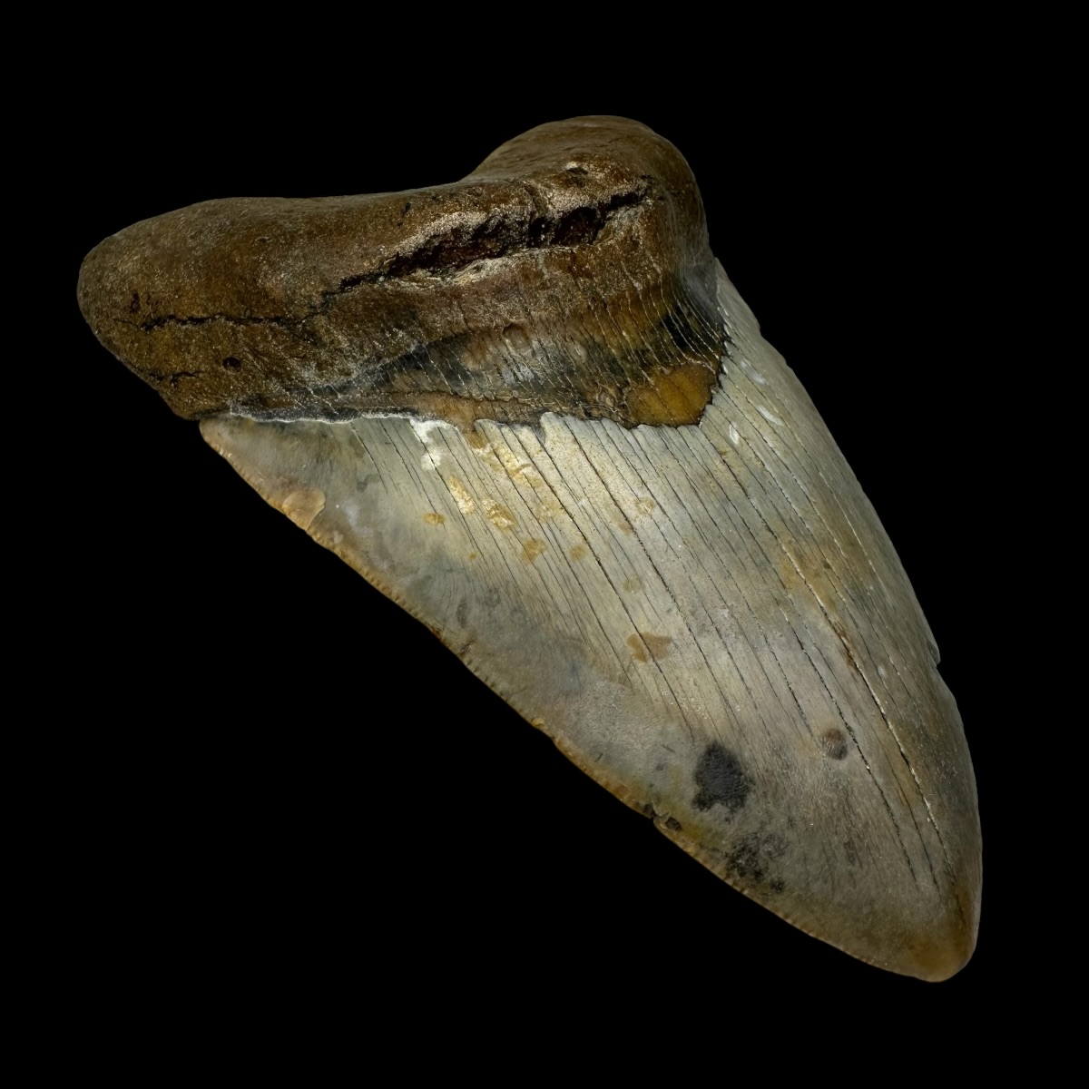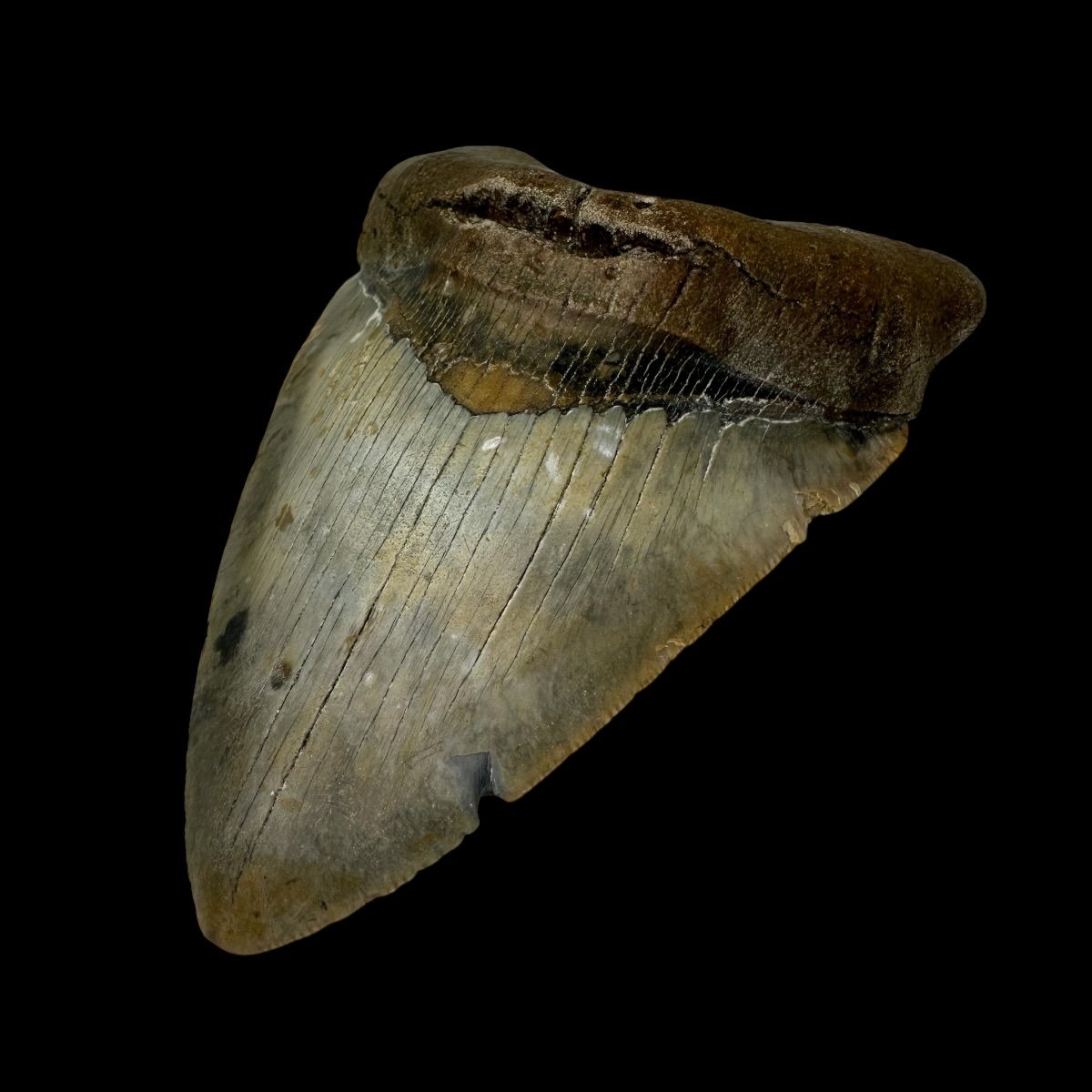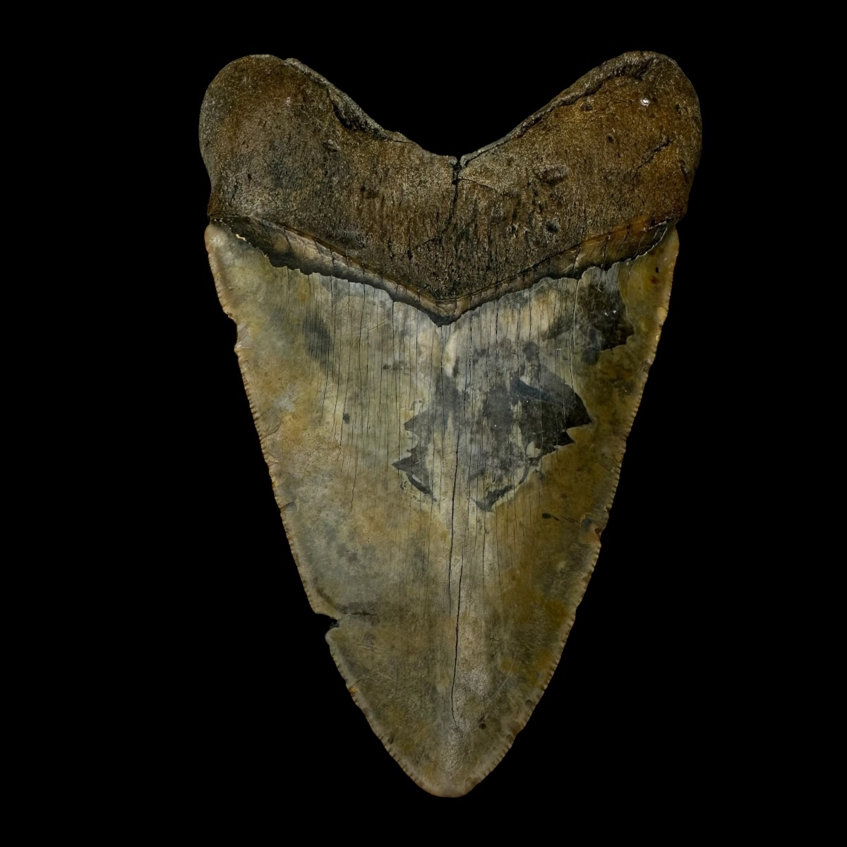 Every Megalodon tooth fossil we offer is completely natural, with no repairs or enhancements—just a light cleaning to remove marine deposits. Each piece is one-of-a-kind, showcasing its own distinctive coloration, sharp serrations, and natural gloss. This Megalodon tooth fossil is a true collector’s treasure, combining authenticity, prehistoric value, and unmatched detail.