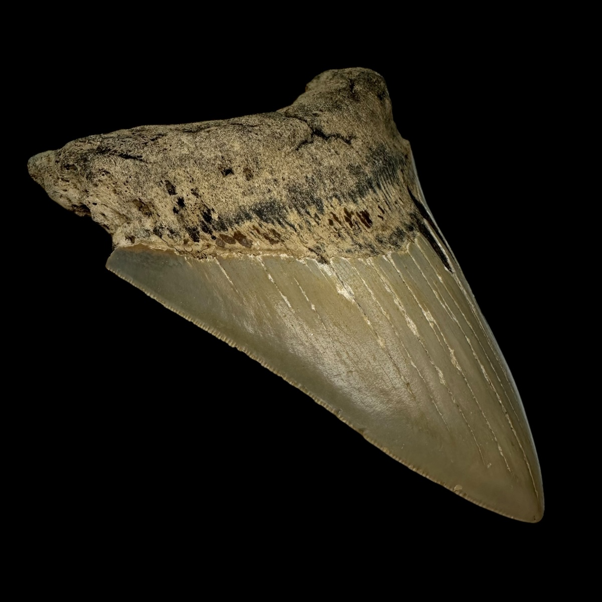 Every Megalodon tooth fossil we offer is completely natural, with no repairs or enhancements—just a light cleaning to remove marine deposits. Each piece is one-of-a-kind, showcasing its own distinctive coloration, sharp serrations, and natural gloss. This Megalodon tooth fossil is a true collector’s treasure, combining authenticity, prehistoric value, and unmatched detail.