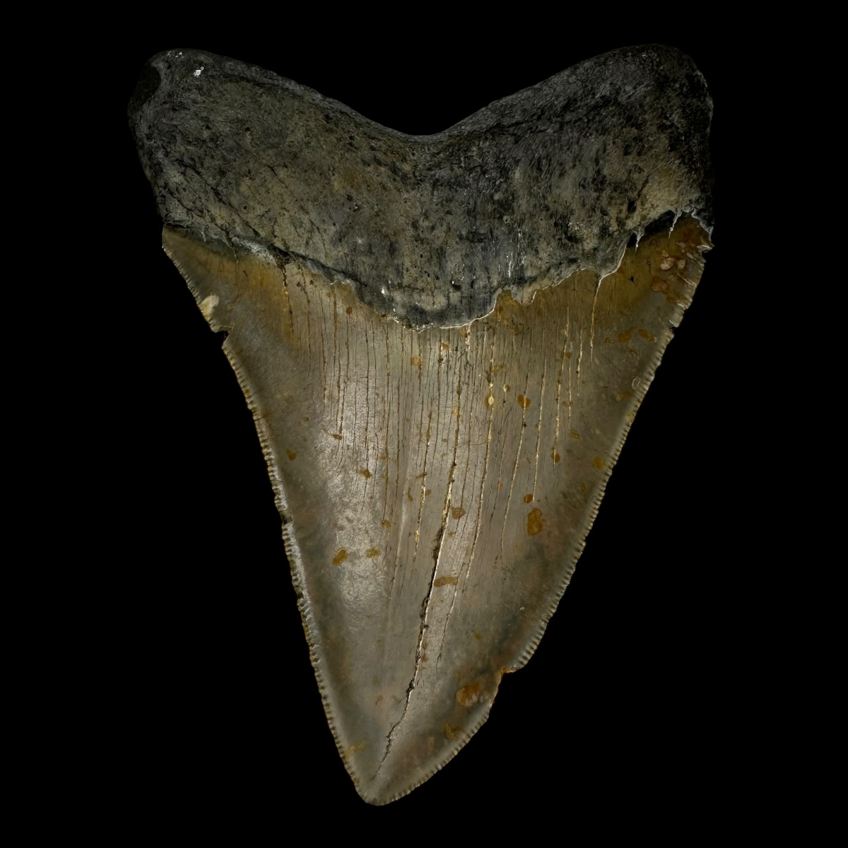 Every Megalodon tooth fossil we offer is completely natural, with no repairs or enhancements—just a light cleaning to remove marine deposits. Each piece is one-of-a-kind, showcasing its own distinctive coloration, sharp serrations, and natural gloss. This Megalodon tooth fossil is a true collector’s treasure, combining authenticity, prehistoric value, and unmatched detail.
