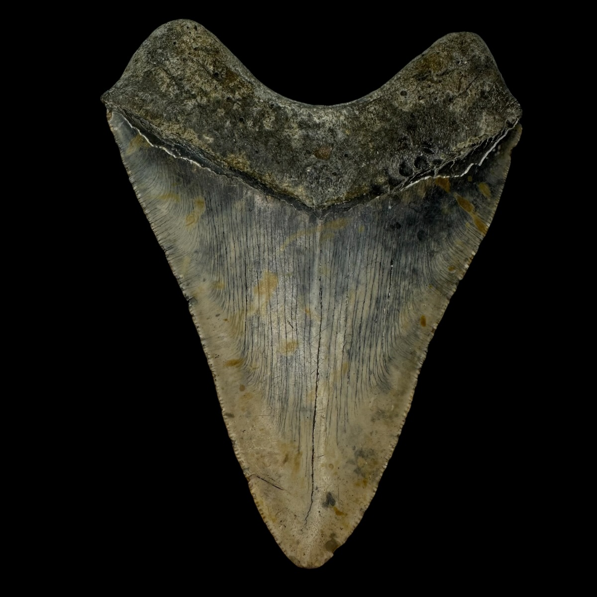 Every Megalodon tooth fossil we offer is completely natural, with no repairs or enhancements—just a light cleaning to remove marine deposits. Each piece is one-of-a-kind, showcasing its own distinctive coloration, sharp serrations, and natural gloss. This Megalodon tooth fossil is a true collector’s treasure, combining authenticity, prehistoric value, and unmatched detail.