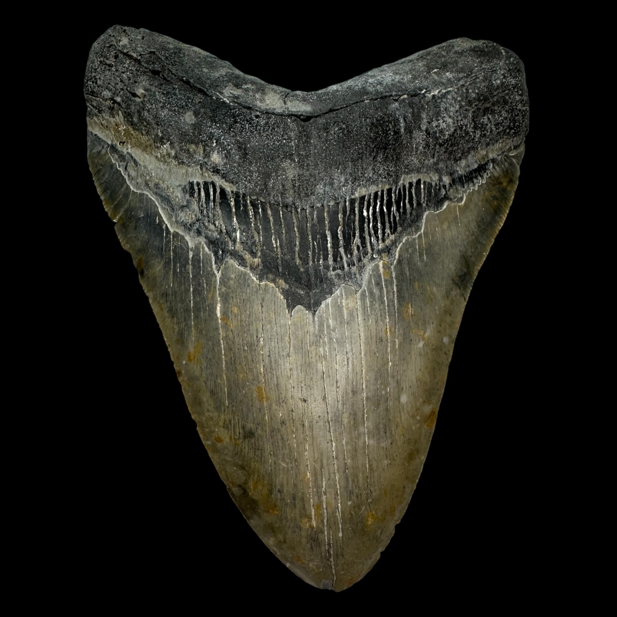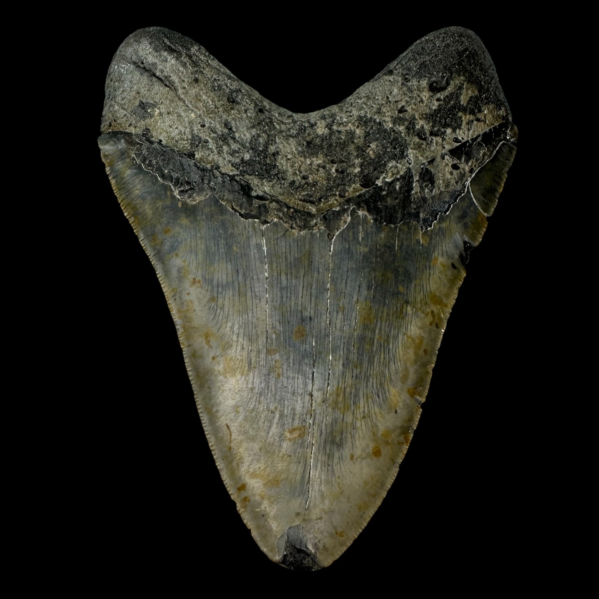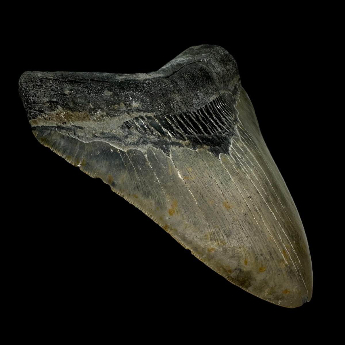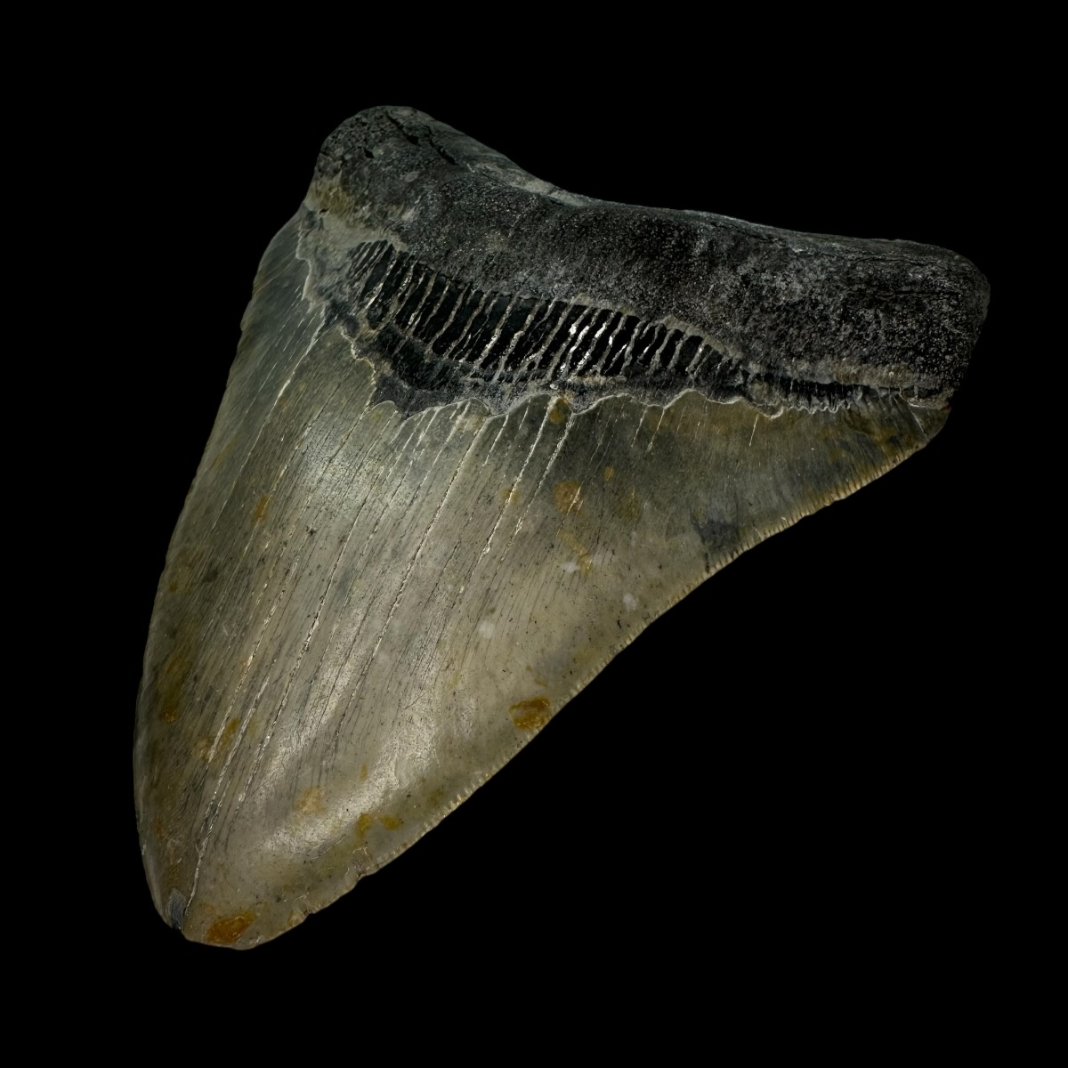 Every Megalodon tooth fossil we offer is completely natural, with no repairs or enhancements—just a light cleaning to remove marine deposits. Each piece is one-of-a-kind, showcasing its own distinctive coloration, sharp serrations, and natural gloss. This Megalodon tooth fossil is a true collector’s treasure, combining authenticity, prehistoric value, and unmatched detail.