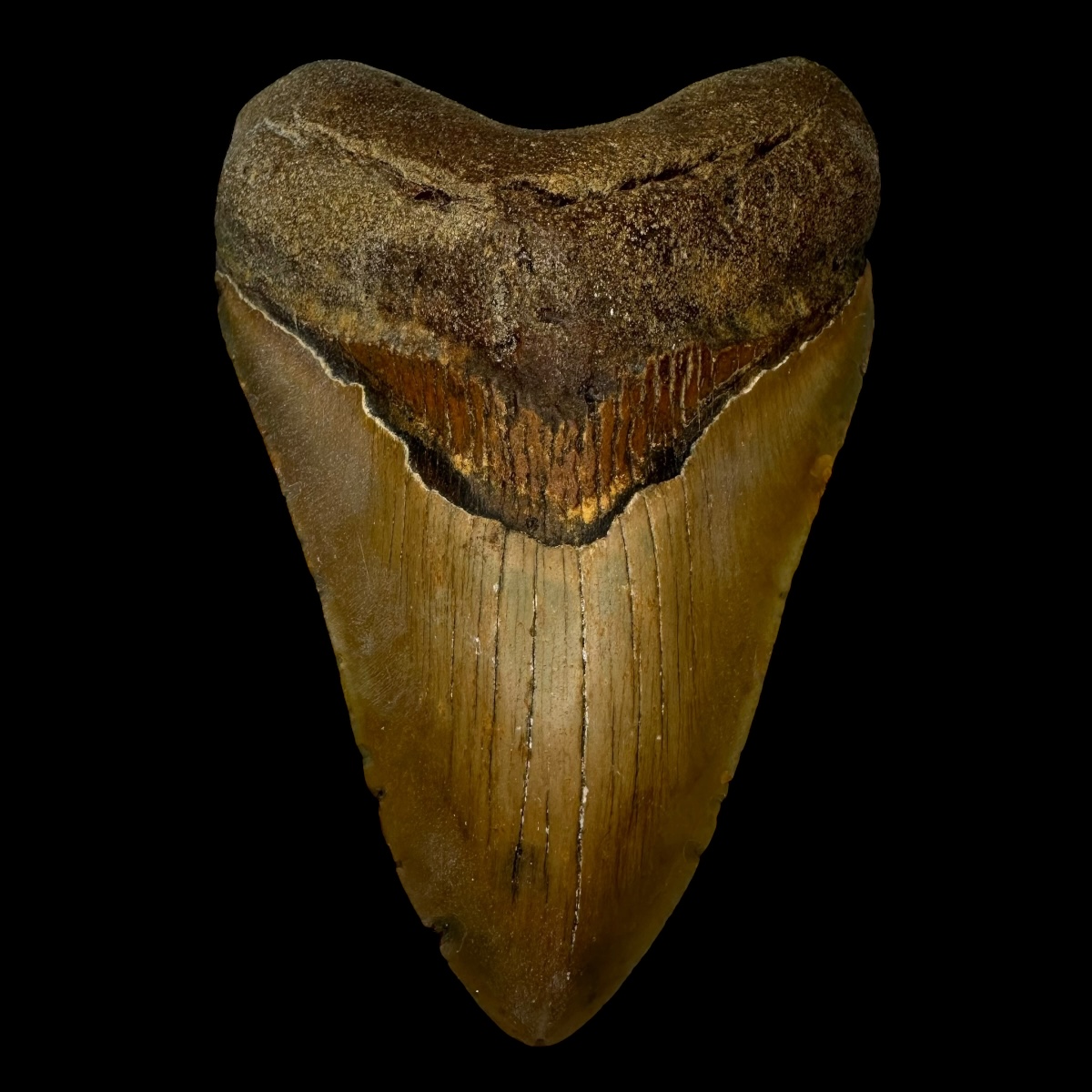 Every Megalodon tooth fossil we offer is completely natural, with no repairs or enhancements—just a light cleaning to remove marine deposits. Each piece is one-of-a-kind, showcasing its own distinctive coloration, sharp serrations, and natural gloss. This Megalodon tooth fossil is a true collector’s treasure, combining authenticity, prehistoric value, and unmatched detail.