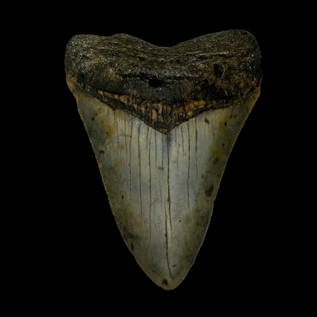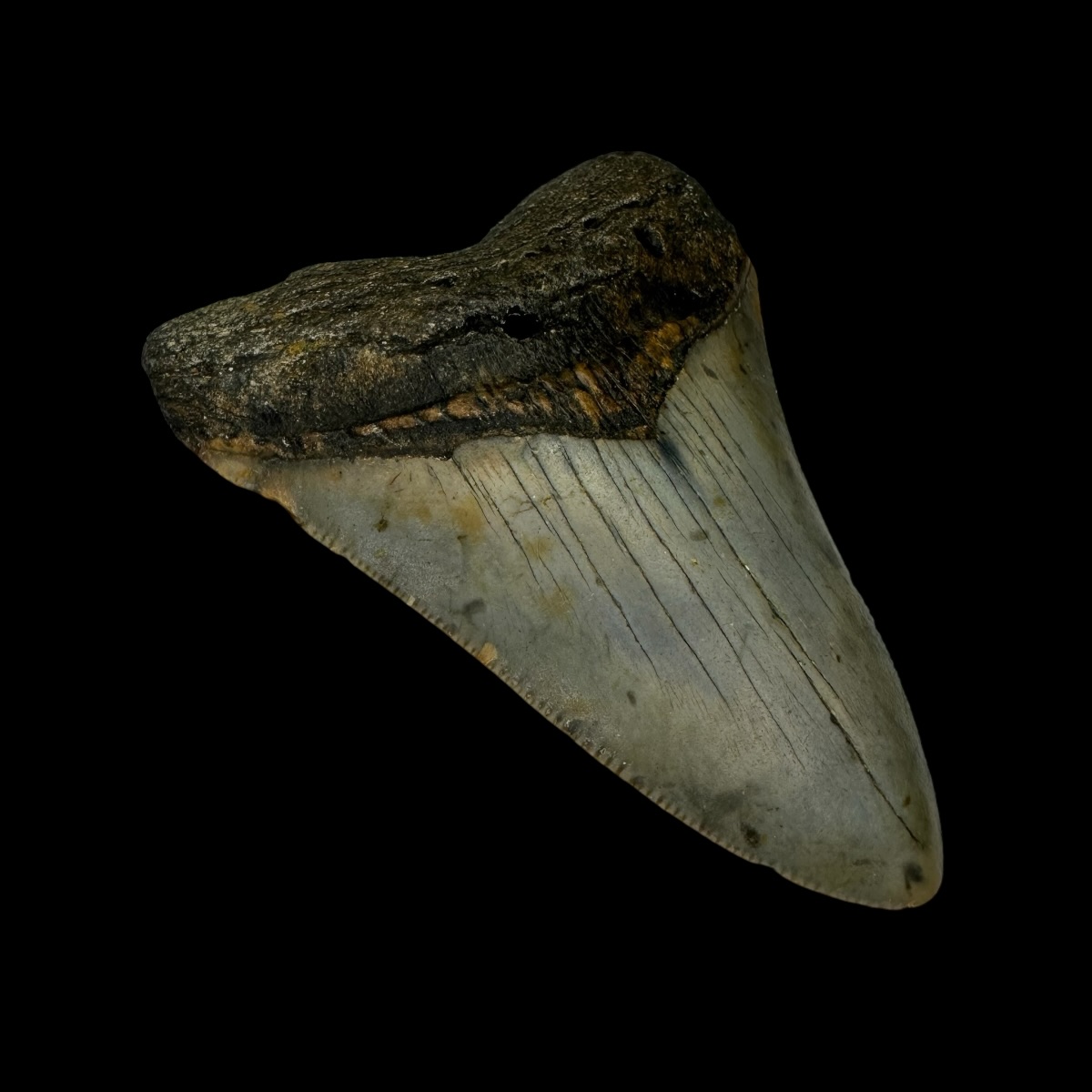 Every Megalodon tooth fossil we offer is completely natural, with no repairs or enhancements—just a light cleaning to remove marine deposits. Each piece is one-of-a-kind, showcasing its own distinctive coloration, sharp serrations, and natural gloss. This Megalodon tooth fossil is a true collector’s treasure, combining authenticity, prehistoric value, and unmatched detail.