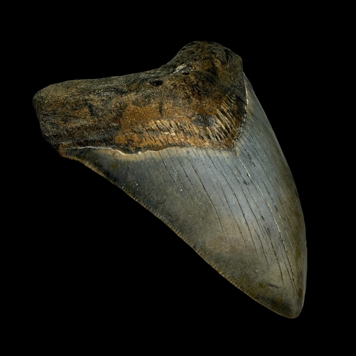 Megalodon Tooth Fossil – Own an extraordinary piece of prehistoric history with this authentic specimen. This Megalodon tooth fossil was expertly recovered by our divers from the Atlantic Ocean, 40 miles off the coast of North Carolina. Formed during the Miocene epoch, this fossil is approximately 5.6 million years old and has not been altered or restored in any way.
