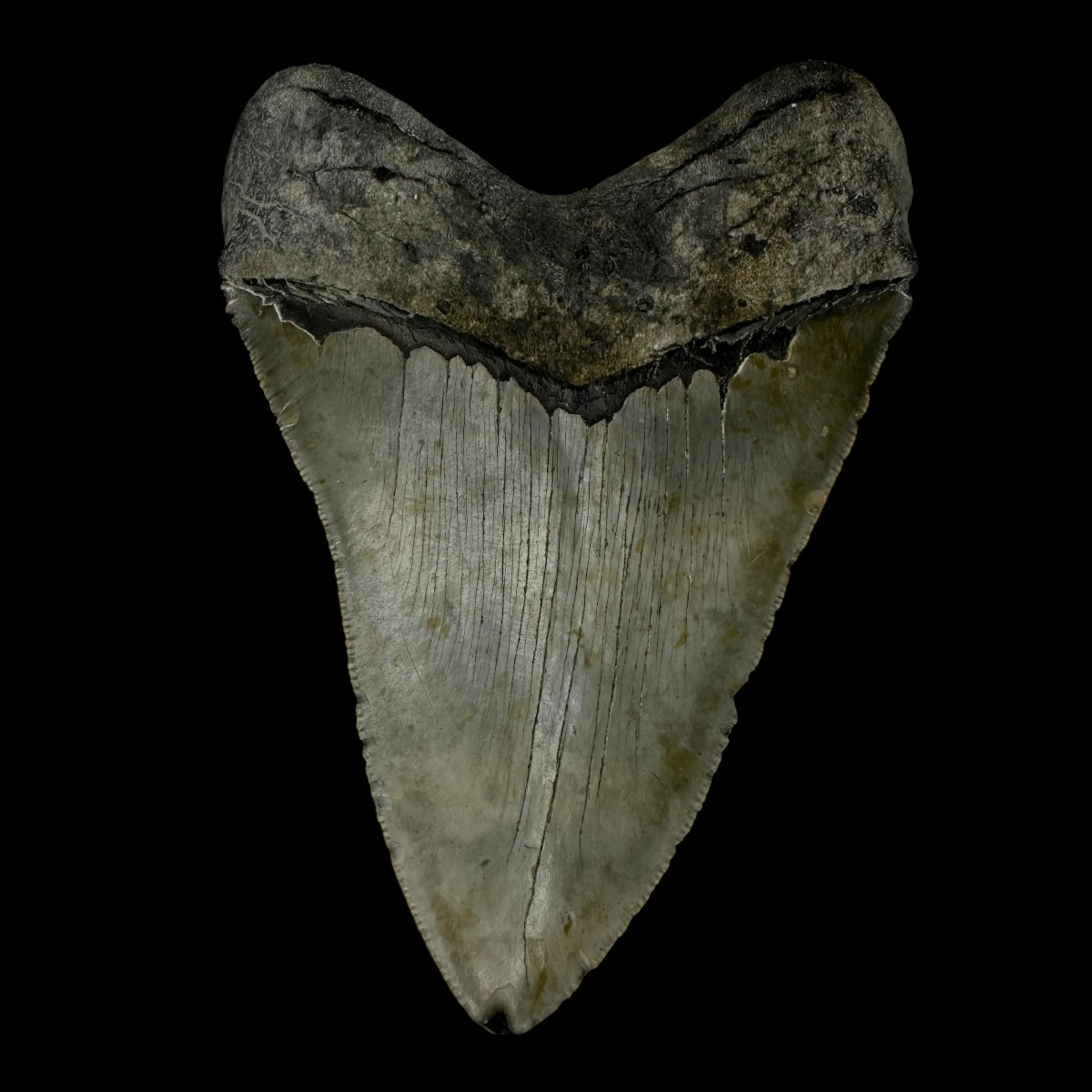 Every Megalodon tooth fossil we offer is completely natural, with no repairs or enhancements—just a light cleaning to remove marine deposits. Each piece is one-of-a-kind, showcasing its own distinctive coloration, sharp serrations, and natural gloss. This Megalodon tooth fossil is a true collector’s treasure, combining authenticity, prehistoric value, and unmatched detail.